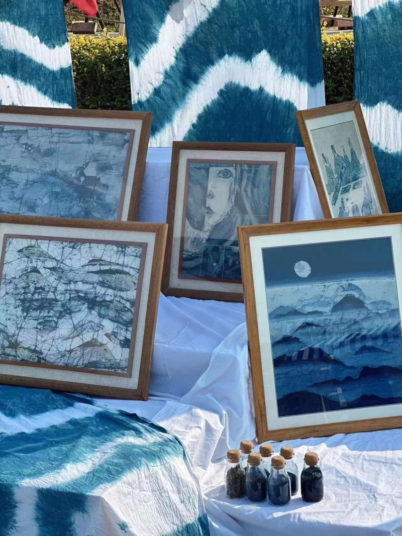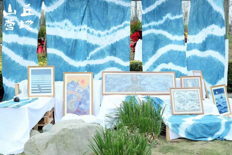 沒有繁忙的工作,沒有林立的高樓,快節(jié)奏的生活,只有滿目盎然的春光,盈盈的碧波,濕地里隨風(fēng)搖擺的蘆葦和用心創(chuàng)作藝術(shù)的人們。凡塵俗事仿佛被隔絕在對岸,在山丘營地你可以放心松弛下來,感受藝術(shù)的多種形式,觀賞和穿行于幅幅藍(lán)色的山巒或花朵中,近距離感受體驗(yàn)非遺文化的樂趣。