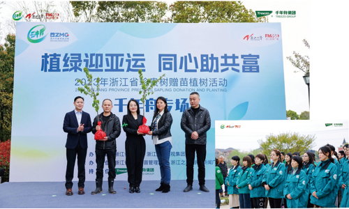 活動現場,千年舟集團副總裁田茂華女士在致辭中提到:作為木文化的“傳承者與發揚者”,千年舟深知“取之以木,當還之以林”的道理。創立二十余載,千年舟的公益航線已揚帆在航一一先后在云南師宗、山東鄭城等地植樹造林達百萬余畝。植樹造林造福一方百姓,播種亞運夢想助力華夏土地。千年舟此次通過實際行動把具有更強的生態功能、更高的經濟價值和更好的景觀效果的珍貴樹種回贈給浙江大地,播種綠色亞運夢想,助力共富浙江,這是對公益行動的高度新升級和意義再擴充。