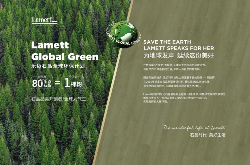 作為建筑和家居裝飾材料的生產(chǎn)商和解決方案服務(wù)的提供商,樂(lè)邁石晶一直在探索新型綠色環(huán)保材料,以積極響應(yīng)國(guó)家提出的“雙碳戰(zhàn)略”。我們始終堅(jiān)持履行社會(huì)責(zé)任,踐行低碳、節(jié)能制造。以安全健康、可持續(xù)發(fā)展的理念,提倡“每使用80m2樂(lè)邁石晶產(chǎn)品,可以保留一棵樹(shù)”,將地球的美好延續(xù)下去。