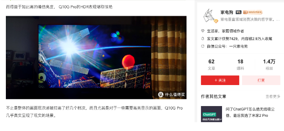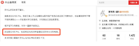 綜合來看,TCL Q10G Pro確實在電視的畫質與軟硬件體驗方面有著相當突出的優(yōu)勢,也怪不得像@家電狗這些行業(yè)權威大V都直言TCL Q10G Pro是2023年最值得買的Mini LED電視,這個稱號用在Q10G Pro上確實是實至名歸啊。