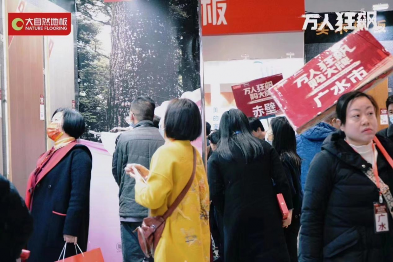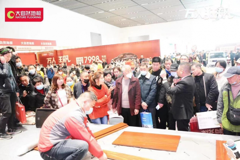 活動當天湖北武漢博覽中心人頭攢動,眾多在線上報名、觀看活動視頻的消費者紛紛來到大自然展區參觀、選品,近距離感受大自然木地板的質量和觀感。