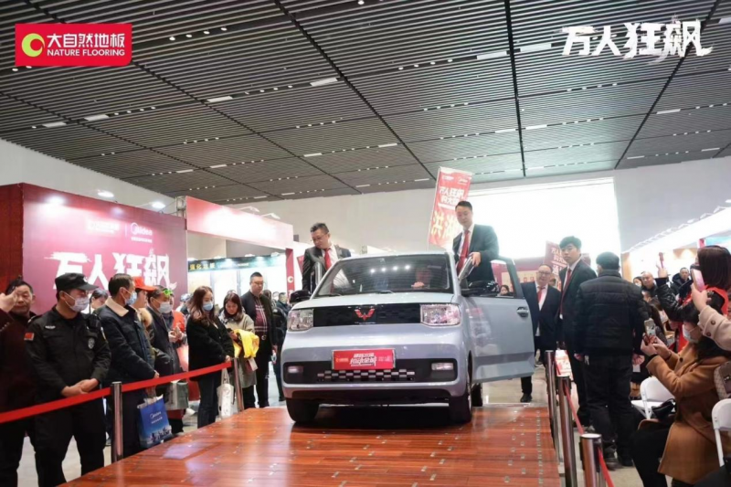 在鋼扣拉力賽活動尾聲,品牌方將五菱宏光汽車開上了現場準備好的木地板展臺,通過汽車重量對地板的反復碾壓,讓消費者直觀的感受其技術的穩定性和地板的牢固性。