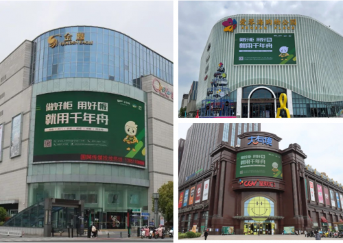 除了交通上,在生活中人流量最大的要數購物中心了,千年舟在鹽城各大商業中心的顯示大屏上均投放了宣傳廣告,循環播放的顯示屏和醒目的廣告牌,進一步提升了千年舟在鹽城的知名度和影響力。