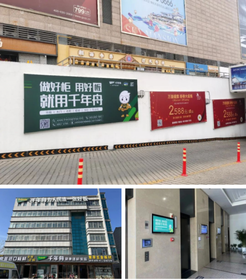 “隨風潛入夜,潤物細無聲”,千年舟鹽城代理采用多形式、大范圍和全覆蓋的方式,在沿街商鋪甚至住宅小區的電梯口和車庫等地方也布置了千年舟的廣告,在潛移默化中讓千年舟慢慢深入每一位鹽城人民的心里。