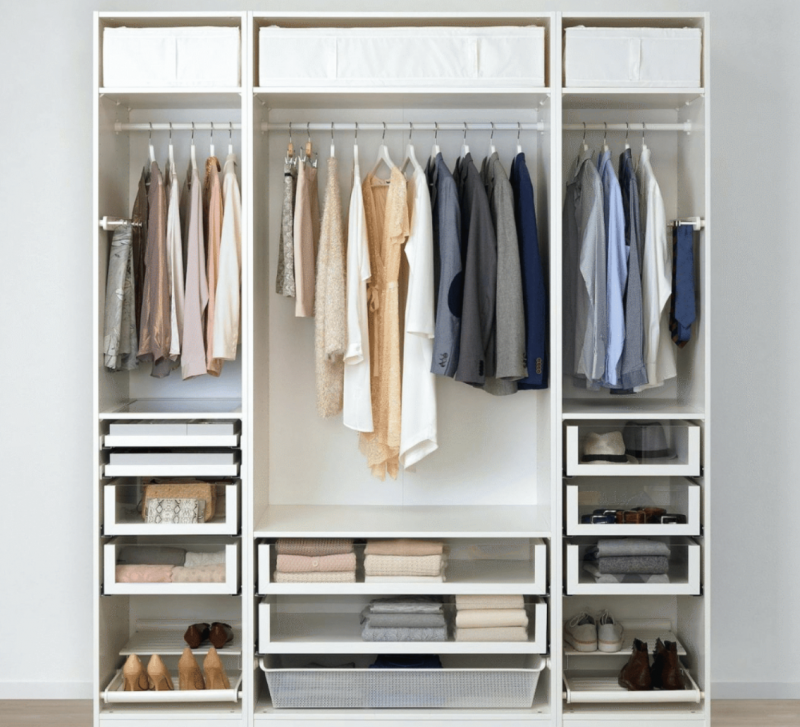 衣柜的選擇其實水也是比較深的,可能會涉及到板材、五金、尺寸、配色、開門方式等多個維度,個人建議是不要買成品定好格子的衣柜,這樣的話我們在實際放衣服的時候就會被成品的格子束縛住,如果只是定制框架,在內部用架子的形式進行自由定制,往往在后期使用的過程中會更加方便一些。