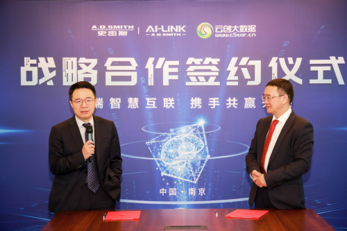 【5月9日 南京】A.O.史密斯和云創(chuàng)大數(shù)據(jù)正式簽署戰(zhàn)略合作協(xié)議。雙方將攜手同行,在人工智能生成式大模型領(lǐng)域進(jìn)行深度合作。在AI技術(shù)大爆發(fā)的當(dāng)下,如何用好工具為人們美好生活提供智慧解決方案,是A.O.史密斯AI-LiNK智慧互聯(lián)戰(zhàn)略落地的重要使命。A.O.史密斯(中國(guó))邱步總裁、云創(chuàng)大數(shù)據(jù)劉鵬總裁等雙方領(lǐng)導(dǎo)共同出席簽約儀式。
