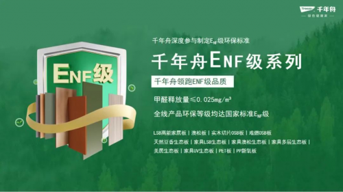 始于自然,踐行環保。千年舟經過24年的科研創新,每張板材都深藏著研發智慧、科技智慧。堅持工藝高標準、質量高標準、環保高標準,以客戶為導向,將綠色、健康和環保至于首位。2022年,千年舟所產的澳松板、OSB板、LSB板等十款產品率先再行業中獲得“中國綠色產品”認證,創新領先,精益求精。目前千年舟ENF級產品實現全渠道覆蓋。