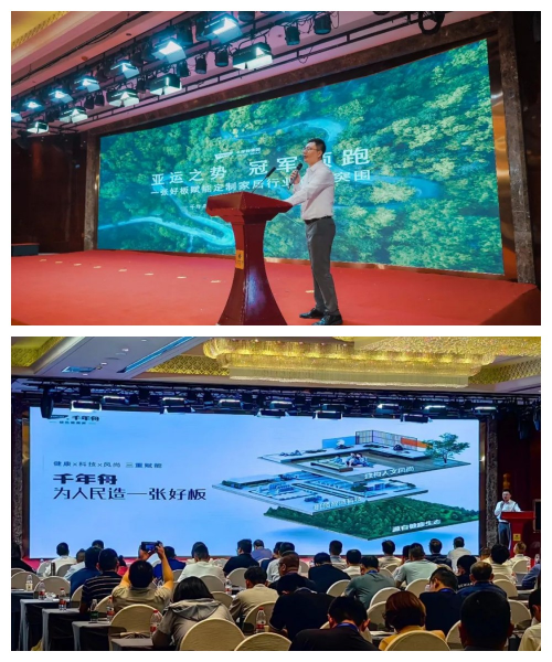 千年舟用超前技術(shù)創(chuàng)新產(chǎn)品,并充分發(fā)揮「綠色智造」的生產(chǎn)優(yōu)勢(shì),為家居行業(yè)扛起一面高質(zhì)量健康發(fā)展的旗幟。而作為行業(yè)龍頭的千年舟,在本次大會(huì)現(xiàn)場(chǎng),也是當(dāng)之無(wú)愧的成為代表,進(jìn)行了一場(chǎng)精彩的主題演講,并表示未來(lái)將乘亞運(yùn)之勢(shì),用一張好板賦能定制家居行業(yè)存量突圍, 實(shí)現(xiàn)冠軍領(lǐng)跑。