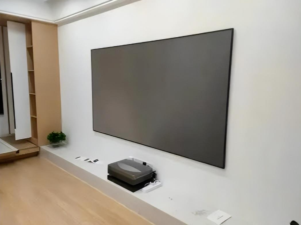 通常,安裝激光電視時需要同時掛好抗光幕布,然后調整激光電視主機焦距。抗光幕布尺寸大且必須保持平整用來保證最佳的觀影效果,另外還要經過一系列的對焦過程,耗時又耗力,多次的對焦矯正耗費心力又不討好,外加激光電視的壽命最多只能維持在5年左右,價格又比較昂貴,一次體驗下來只覺得自己是怨種無疑。