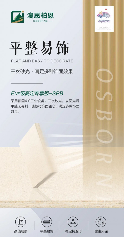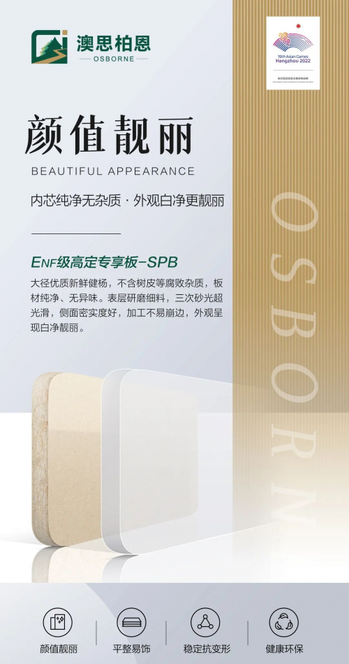 此次新品——ENF級高定專享板-SPB,更是澳思柏恩經(jīng)過多年的沉淀,跟隨市場發(fā)展態(tài)勢,關(guān)注消費者的核心需求,在產(chǎn)品設(shè)計和原料應(yīng)用方面層層篩選,不斷錘煉核心工藝,歷經(jīng)時光打磨而成的優(yōu)質(zhì)板材產(chǎn)品。