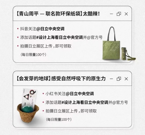 6月8-11日,在大家近距離接觸這些引領設計潮流的新品、聆聽設計大咖前瞻性的設計趨勢、感受設計給予生活的美好時,日立準備了多款限定周邊,青山周平-聯名款環保紙袋、會發芽的地球,用再生設計喚醒最初的自然。