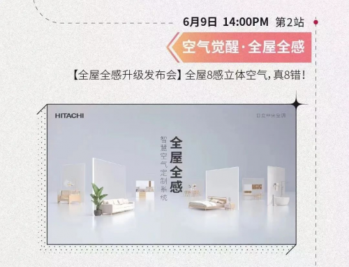 從“千人千面”到“全屋全感”,日立始終以用戶需求驅動產品的創新升級。6月9日14:00,日立將再次升級發布 “全屋全感”智慧空氣定制系統,帶來全屋8感立體空氣,持續探尋理想空氣的全新篇章。期待與大家身臨其境,一探究竟!