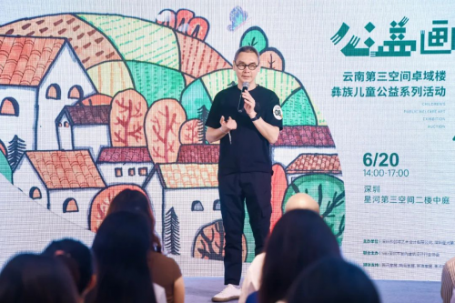 隨后深圳星河第三空間項(xiàng)目總經(jīng)理助理趙艷芬女士上臺(tái)發(fā)言,她表示本次活動(dòng)是繼2021年“心有微光、助夢(mèng)遠(yuǎn)航”拍賣會(huì)后與創(chuàng)域設(shè)計(jì)的又一次攜手,共同為鄉(xiāng)村公益美學(xué)教育獻(xiàn)上自己的愛(ài)心,這也是踐行星河第三空間企業(yè)的社會(huì)責(zé)任。“眼中有光,心中有愛(ài)”,匯集大家的點(diǎn)滴愛(ài)心,去助力鄉(xiāng)村孩子們的夢(mèng)想。