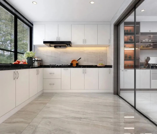 廚房墻面建議采用暖色的馬可波羅瓷磚,可選雅光表面如皮膚般細膩柔滑的質感,讓整個廚房空間顯現出別樣的精致與優雅;素雅的底色上,紋理靈動飄逸,色彩純凈淡雅,營造出簡約時尚的家居氛圍。