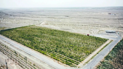 1986年,阿克蘇地區(qū)啟動(dòng)了柯柯牙荒漠綠化工程,在近40年里,一代又一代阿克蘇人在荒灘戈壁上建成了南北長(zhǎng)25公里、東西寬4公里集生態(tài)林、經(jīng)濟(jì)林、防風(fēng)林于一體的防風(fēng)治沙“綠色長(zhǎng)城”,使阿克蘇的沙塵天氣從每年100天左右減少至20天左右,昔日的“風(fēng)沙策源地”變成“綠色聚寶盆”,孕育著勃勃生機(jī)與希望。