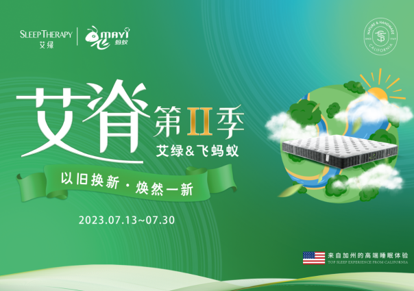 《艾脊第二季》全國聯動活動,是美國艾綠床墊聯合飛螞蟻舉辦以舊換新·煥然一新全國聯動活動,共同發起“綠色環?!背h,倡導床墊回收,踐行艾綠品牌的綠色環保睡眠理念。