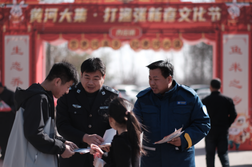 春為四時首,法居百業先。人聲鼎沸,滿滿煙火氣,今天是喬莊鎮居民“趕大集”的日子,南來北往的“趕集人”中,一隊身著深藍色制服的人尤為醒目,他們將500余份黃河保護法“普法大禮包”送到了游人群眾手中,面對面向沿黃群眾普及黃河保護法和防汛知識,細心為群眾答難題、解疑惑。