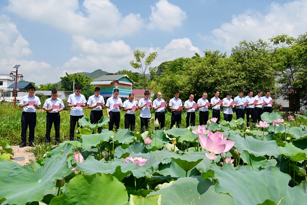 活動現場,大家集中觀賞了蓮花的純潔、清雅,同時還一起聆聽了中央蘇區的廉潔故事。隨后,全體黨員集體誦讀周敦頤的《愛蓮說》,共同感受蓮花的“不染不妖”品格,表達對蓮花清新脫俗風采的喜愛,以及對“出淤泥而不染,濯清漣而不妖”高潔品格的贊賞,進一步引導黨員干部職工始終秉承古圣先賢的嘉言懿行,并以此為鏡觀照自身,始終保持崇廉拒腐、修身養德的思想境界。