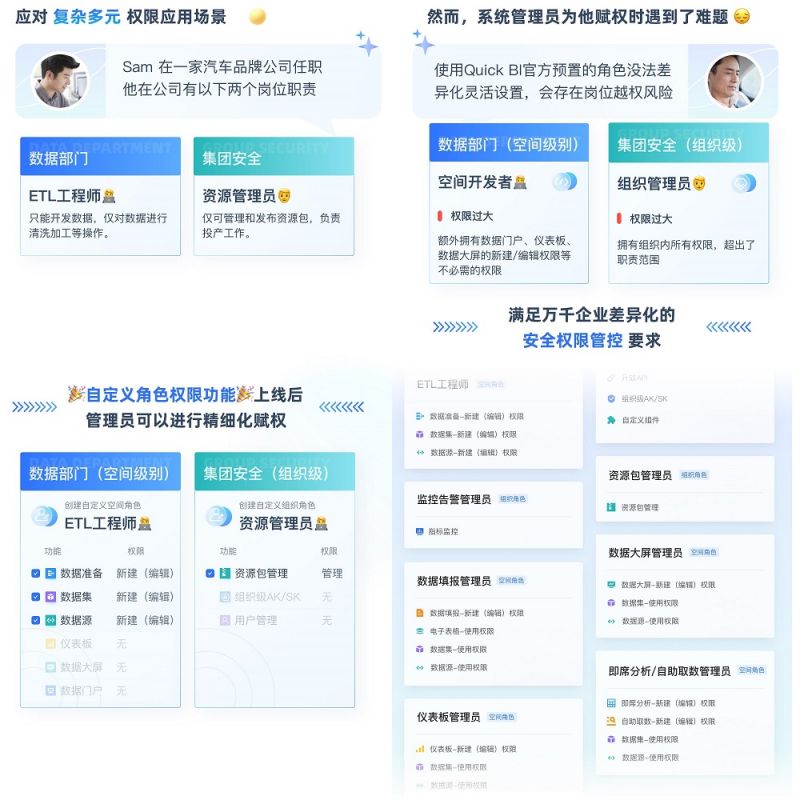 不同崗位上的員工往往有不同的權(quán)限訴求,以往使用官方預(yù)置的權(quán)限角色,往往會(huì)有權(quán)限過大或過小的問題,權(quán)限應(yīng)用不夠精細(xì)。