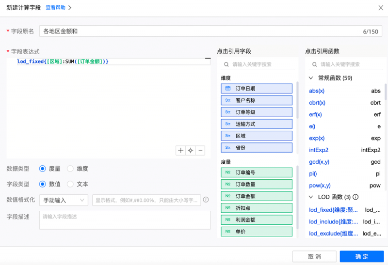 (1)新建計(jì)算字段支持LOD函數(shù)。