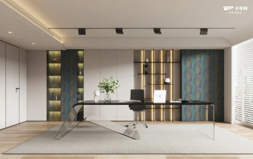 結合千年舟的高端智造黑科技,將這樣的皮紋花色壓貼在板材上時,花色紋理會顯得更加細膩天然,手指輕觸緩慢滑動,更給人以膚感天成的柔韌觸感,在愛不釋手中,回歸極度舒適的親近感。