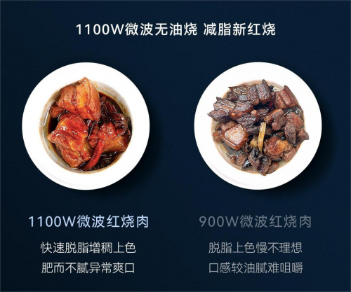 首先,凱度「微魔方」搭載了高達1100W的黃金第六檔微波烹飪技術,通過微波烹飪實現了出色的紅燒肉和小炒肉效果,甚至不亞于傳統鍋炒,同時也減少了使用油量,實現了便捷無油煙的健康烹飪方式。這一技術要求熱效率達到50%以上,而市面上常見的微蒸烤箱熱效率普遍不到50%。