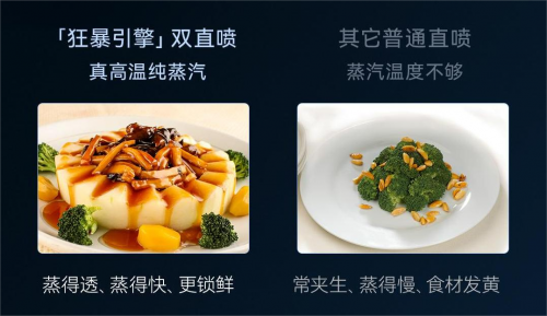 1100W變頻微波+2700W「狂暴引擎」雙直噴大蒸汽,變頻微波由內深入食材肌理,澎湃蒸汽由外立體裹蒸,食材軟嫩鮮美,營養健康;