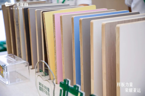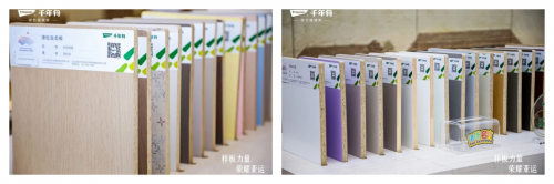 千年舟帶去的家具樂凈生態(tài)板、鋅效抗菌系列、新型難燃OSB板、LSB高能家居板、準(zhǔn)分子超膚板等板材、以及各類全新花色都成為了展會上引人矚目的焦點(diǎn)。