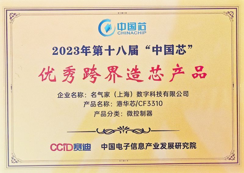 9月20日下午,2023琴珠澳集成電路產業促進峰會暨第十八屆“中國芯”頒獎儀式在珠海隆重舉行,大會頒發了第十八屆“中國芯”優秀產品及企業獎項。名氣家憑借“港華芯”入選優秀產品榜單,榮獲“中國芯”優秀跨界造芯產品獎!