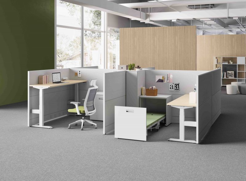 靈動的工作空間不僅幫助集中精力,更有助于構建樂于協作、生機盎然的工作氛圍。屏風與Standy升降桌的組合搭配,打造一方安靜、獨立的個人工作位;豐富配色營造輕松氛圍,激發無窮靈感,團隊創造力自然涌現。