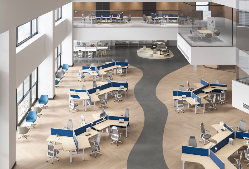 Standy升降桌搭配會議桌和隔斷,打造多樣化職員區域