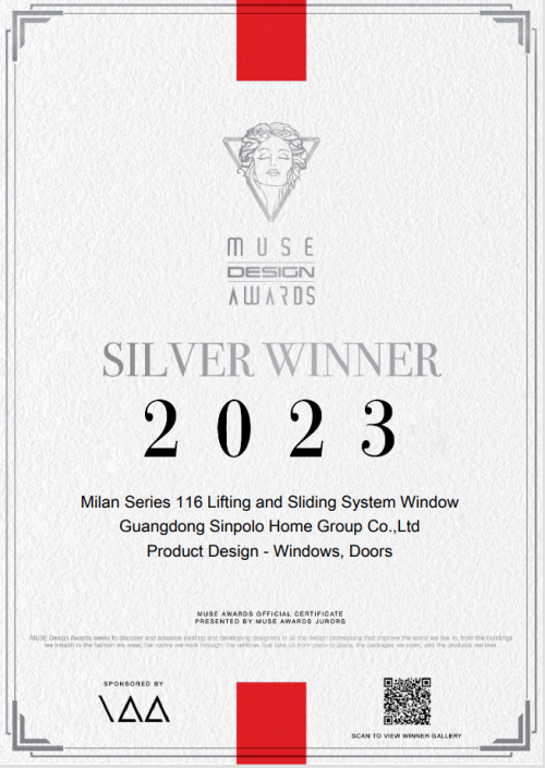 而圣堡羅整體門窗創新研發的米蘭116提升平移系統窗,憑借其杰出的概念性、創新性和高標準呈現而受到評委會的高度評價,一舉斬獲MUSE設計獎銀獎,閃耀于國際舞臺,展現出圣堡羅整體門窗的設計實力,也讓世界認可了以圣堡羅為代表的中國家居建材企業的智造魅力。
