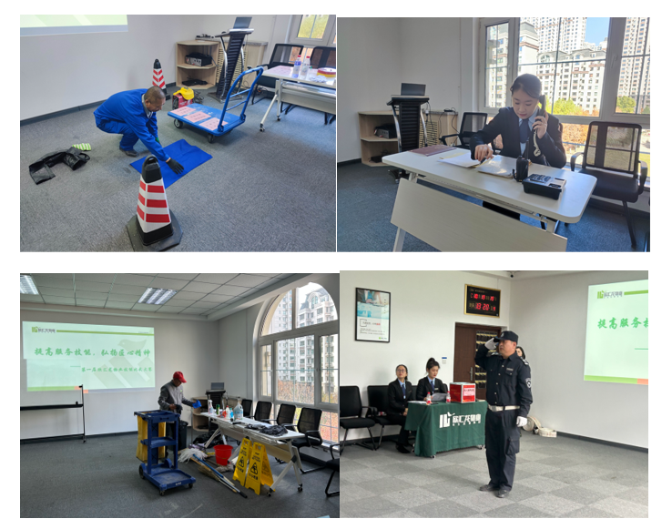 本次技能比武大賽分為崗位技能實(shí)操與理論考試兩部分,崗位技能實(shí)操部分圍繞專業(yè)理論知識(shí)、技能規(guī)范考核、服務(wù)場景展示、消防安全模擬等展開。由欣匯龍物業(yè)總經(jīng)理譚鋒、業(yè)務(wù)副總林智強(qiáng)、業(yè)務(wù)副總田卓、品質(zhì)部經(jīng)理錢曉丹、客服條線負(fù)責(zé)人郗曉燕、秩序條線負(fù)責(zé)人曹健、環(huán)境條線負(fù)責(zé)人閆麗麗7人組成的評(píng)審團(tuán),依照公平、公正、公開的原則,多維度考評(píng)客服管家、秩序維護(hù)、環(huán)境保潔、工程維修四個(gè)隊(duì)伍的綜合能力。