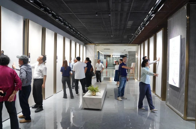 專家們首先來到金牌亞洲綠色智造生產基地,現場考察了項目產品生產情況,對項目產品金絲絨超抗污柔光磚生產線智能化程度給予高度評價,智能制造數字化生產線有利于打造和提高行業核心競爭力;專家們對項目產品有很高的認可度,認為項目產品的面世是行業技術創新又一次突破。