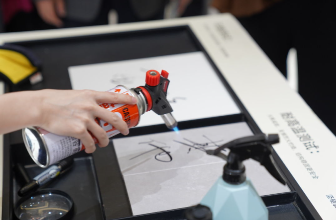 現場測試金絲絨超抗污柔光磚的抗污力