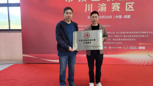 隨后,丁輝秘書長為本次川渝賽區(qū)執(zhí)行單位授牌,分會副會長、四川省建材家具裝飾商會頂墻集成分會會長、四川潤邦建材有限公司總經(jīng)理張先文上臺接受授牌,本次授牌儀式象征著對該執(zhí)行單位在組織和推動本次比賽中所做的努力和貢獻的認可和表彰。
