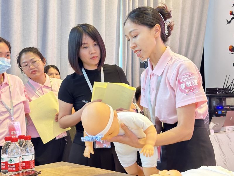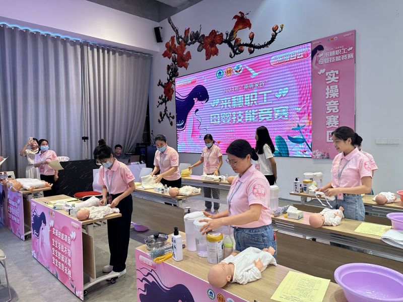 比賽現場精心布置,使比賽更加貼近實際工作情境,全方位考核選手的綜合素質。本次競賽不僅為母嬰護理行業從業的來穗職工提供了一個相互切磋、展示技藝、交流經驗的平臺,更進一步提高其職業素養和專業技能,推動白云區母嬰護理行業的高質量發展。