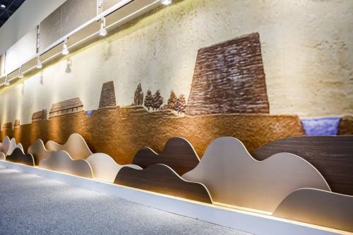 以木為基,以舟為始,從良渚先民打造獨(dú)木舟穿梭于內(nèi)外城探索更廣闊的世界,到千年舟從世紀(jì)之交駕舟啟航,5000年文化積淀,造就了千年舟獨(dú)特的文化審美與精神傳承。以新石器時(shí)代人類(lèi)文明“玉器、狩獵、農(nóng)耕、編織、圖騰”為靈感打造的全新花色鋪陳,刻畫(huà)出的一整個(gè)背景墻的歷史長(zhǎng)圖,波瀾起伏間完整再現(xiàn)了千年前真實(shí)、立體、全面的中華文明圣地。