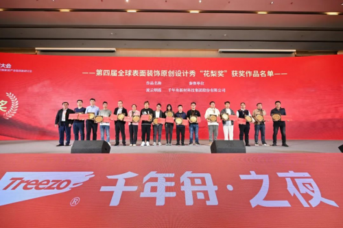 與此同時,憑借流云煙霞原創花色,千年舟榮膺全球表面裝飾原創設計秀-花梨獎,以璀璨奪目之姿名,獲得現場評委和嘉賓的一致好評。