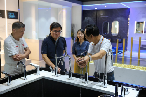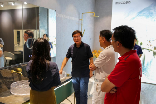 隨后,在德國COSO衛浴亞太區總裁胡結輝、德國COSO外貿部經理潘裕民的陪同下,老師們一同走訪德國COSO衛浴亞太區總部展廳等,近距離感受了COSO的產品結構、質量標準、科研實力,了解產品創新情況。