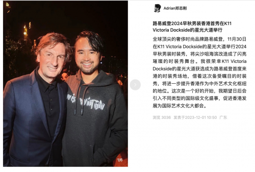 近期K11集團(tuán)重磅官宣,全球頂尖奢侈時(shí)尚品牌 Louis Vuitton首度選址中國(guó)香港,于11月30日舉行萬(wàn)眾期待的全球首個(gè)2024早秋男裝系列時(shí)裝秀。