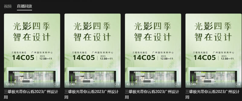 三雄極光在廣州設(shè)計周還未正式啟幕時,便已在官方視頻號發(fā)布參展預(yù)告視頻,并發(fā)起直播預(yù)約通道,同時邀請多位業(yè)界設(shè)計師精英拍攝打call視頻,進行大力宣傳預(yù)熱,吸引更多設(shè)計師的關(guān)注。而在為期四天的廣州設(shè)計周期間,由專業(yè)人員在現(xiàn)場直播詳細(xì)講解,為大家揭曉驚喜。這也成功吸引到了現(xiàn)場觀眾的注意,紛紛到一旁聆聽,或轉(zhuǎn)發(fā)直播給親朋好友,視頻號評論互動區(qū)也一同熱鬧起來。與此同時,在廣州設(shè)計周首日便通過視頻號發(fā)布展位記錄視頻、盤點設(shè)計師高關(guān)注產(chǎn)品的主題視頻,持續(xù)輸出優(yōu)質(zhì)視頻內(nèi)容。