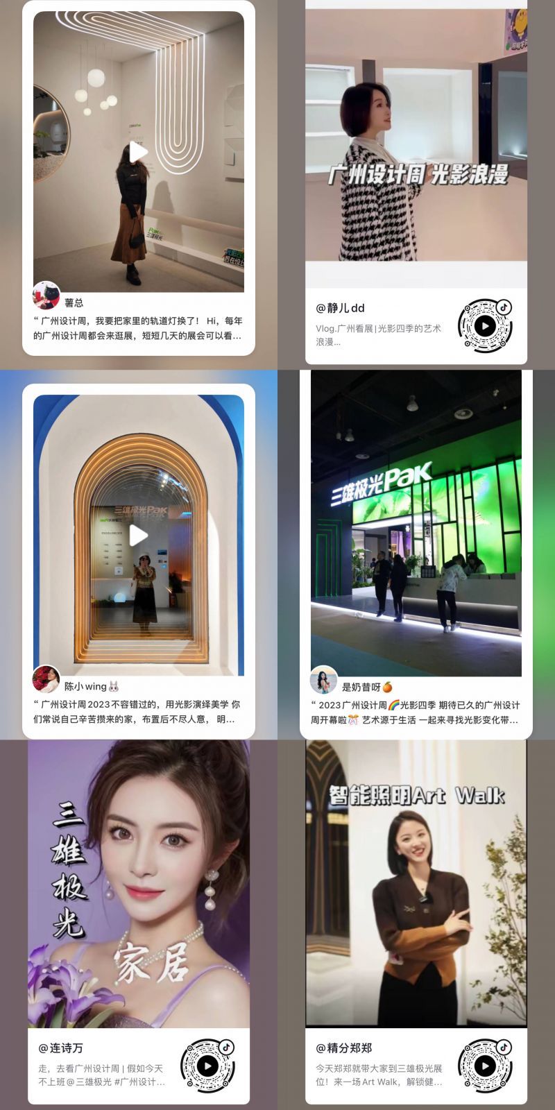 顯然,在內(nèi)容為王的新媒體時代,三雄極光在2023廣州設(shè)計周上以高質(zhì)量的內(nèi)容傳播方式,開辟出了品牌營銷的新賽道,在短視頻的紅海市場里解鎖流量密碼,順勢出圈!