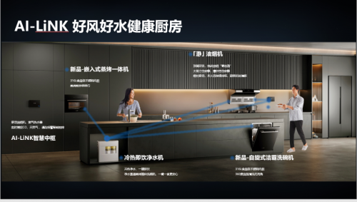 而“風水”廚房中最新亮相的“自旋式”潔霸洗碗機、“彩膜屏”雙蒸汽蒸烤箱,更是為中國家庭量身定制:碗能轉著洗,實現了360度無死角清洗;雙蒸汽系統,蒸得快、蒸得透。不僅如此,這兩款產品通過AI-LiNK與櫥下凈水機聯動,實現大流量凈水直通,確保洗后餐具更健康安全,蒸的食物更健康美味,同時又有效地避免了水垢殘留,全方位滿足用戶健康需求。