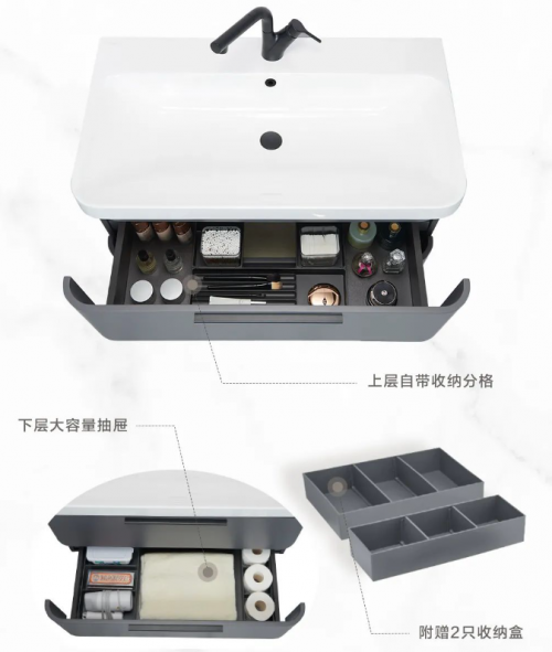 相比而言,衛(wèi)生間里的浴室柜,它更能賦予更多的個性,可以充分地體現(xiàn)你的家裝風(fēng)格。同時,作為衛(wèi)生間的僅有的收納空間,它的收納能力也應(yīng)該被重點考量。如果你也喜歡奶呼呼的奶油風(fēng),喜歡那一份治愈和溫馨,具有柔美曲線的摩恩珂瓏浴室柜是一個不錯的選擇,柜體均是圓角設(shè)計,更有最流行的奶油色系可選擇。雙層自由收納空間,上層自帶收納分格,小物件都可以妥妥安置,下層大容量抽屜,大號日用品也能完美歸位。這樣一款兼具設(shè)計和實力的浴室柜,絕對可以一下子擊中你的少女心。