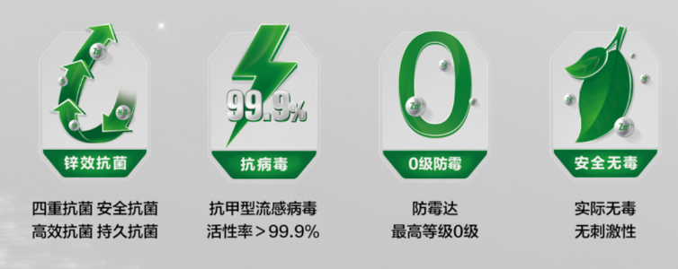 2023年,千年舟創新性的采用新一代三合一鋅效抗菌材料,將所有板材產品全面升級鋅效抗菌2.0,使得成板具有鋅效抗菌、 高效抗病毒、0級防霉的功能特點,因此千年舟家具廠渠道所有產品均是真正的安全健康板材,是家居板材選擇的N0.1!