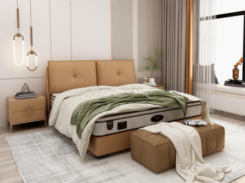 東寶軟床DB-PC205采用頭層牛皮包裹,柔滑細膩,透氣親膚,冬天溫潤如玉,夏日舒爽如風。優質牛皮和飽滿軟包所帶來的舒適感,讓你享受一場由內而外的按摩,閑適和輕松長留心中。