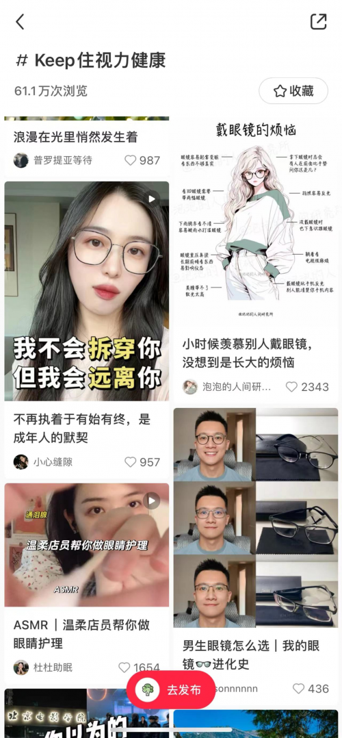此次“職人季”創新跨界營銷活動,共計吸引65萬名用戶參與“職場診脈”活動,吸引超過13萬名用戶進行活動分享,蔡司光學也向超過23萬名用戶派發“護眼禮包”。蔡司光學在Keep的站內話題#Keep住視力健康,也從23年8月以來累積吸引23萬人關注,話題內有超過1萬名用戶分享運動用眼心得。