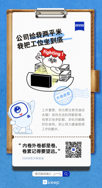 在本次活動中,蔡司光學倡導全民堅持良好的用眼習慣,并通過配戴合適的眼鏡保持清晰視覺,定期進行眼部體檢,及時發現眼部健康問題。系列創意海報,也通過生動有趣的文案和畫面,有效傳遞護眼理念,并激發用戶對蔡司智銳鏡片的興趣度與購買欲。