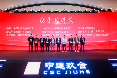 九層之臺,起于累土,合抱之木,生于毫末。大會對2023年優秀供應商進行隆重表彰,頒發了“同心筑夢獎”“精誠合作獎”“玖筑共建獎”“攜手共進獎”“風雨同舟獎”;優秀分供方代表華為終端有限公司、匯張思建筑設計事務所(上海)股份有限公司分別進行VCR展示,邵洋、張潤舟相繼上臺交流,分享與“玖”同行的發展故事,展望未來美好合作藍圖。